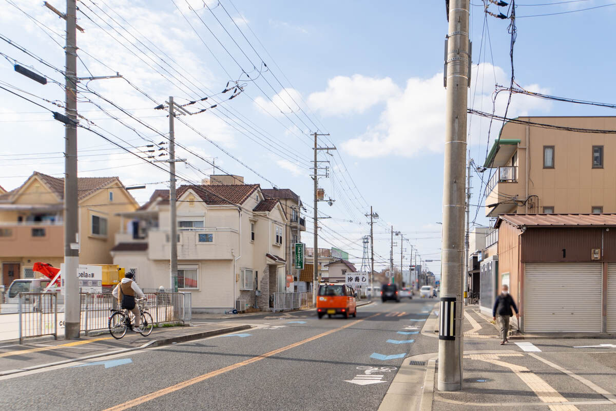 反対方向に行くと、サンドラッグや城南中学校などがあり国道171号線へ。