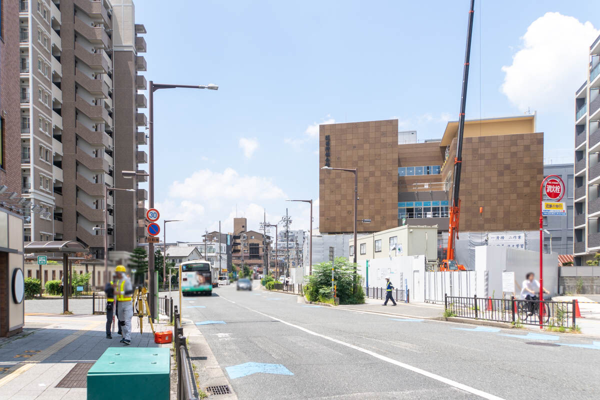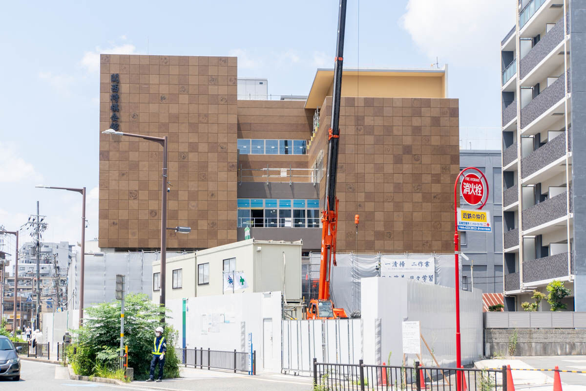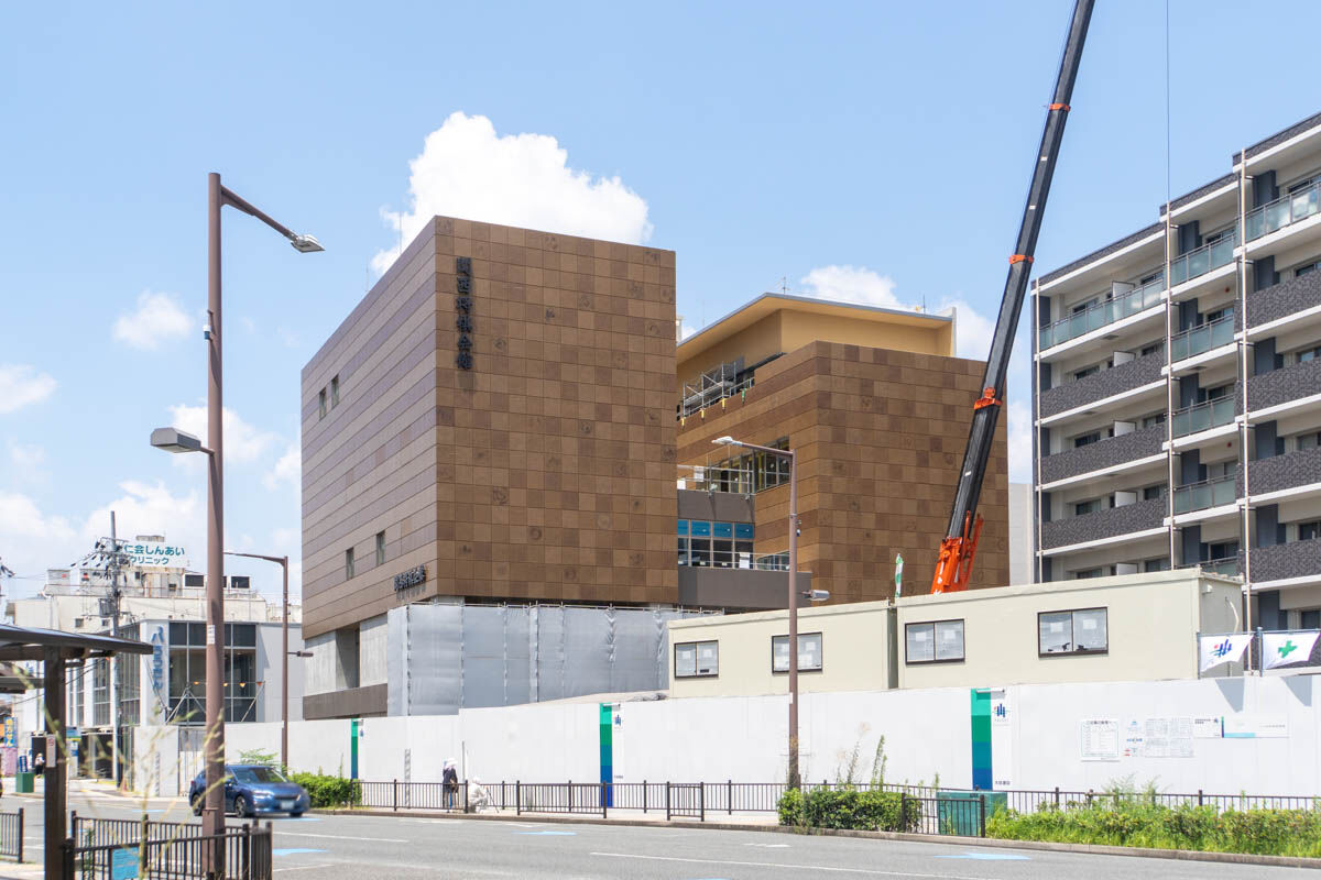JR高槻駅ちかくにつくってる「関西将棋会館」の外観が見えてきてる