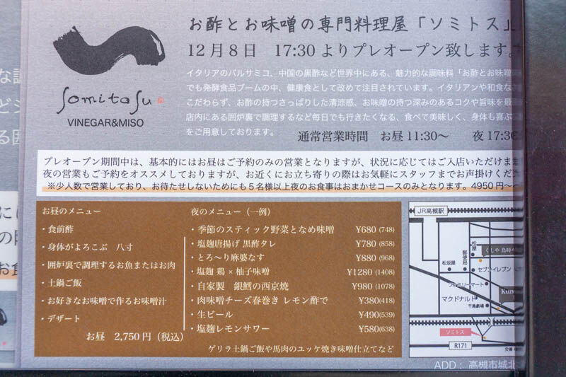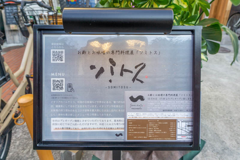 城北町につくってた酢と味噌の専門料理店「ソミトス」がプレオープンしてる。グランドオープンは年明け