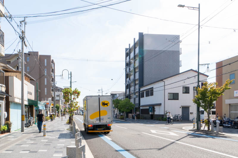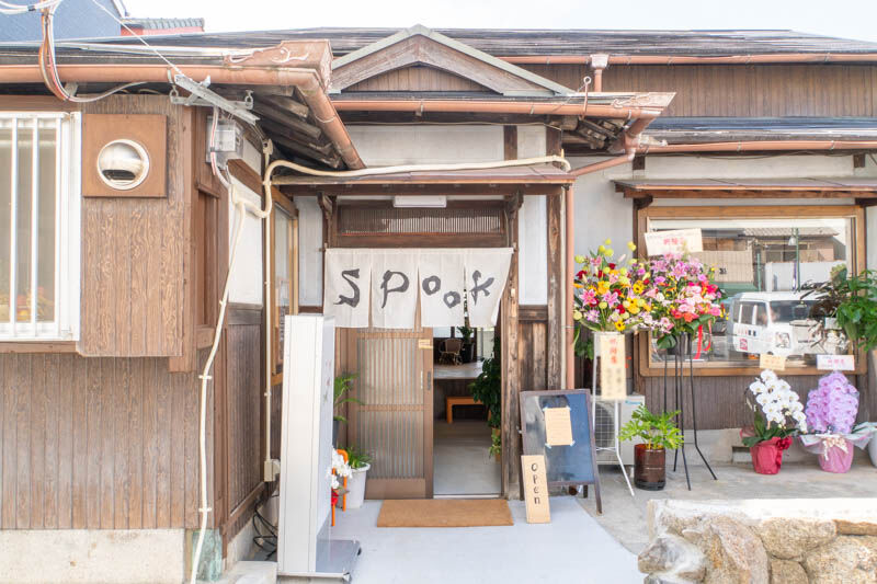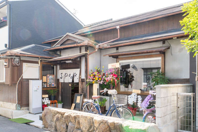 阪急富田駅やJR摂津富田駅へと続く通り沿いにある「岡嶋」というお店の真後ろあたりに『SPOOK COFFEE&BAKE』があります。通りからちょっと奥に入る感じ。