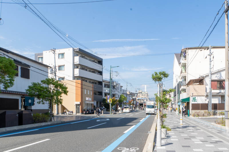 反対方向に行くと、阪急富田駅やJR摂津富田駅方面。