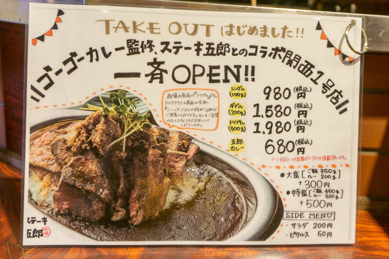 JR摂津富田駅ちかくに「ステーキ五郎咖喱」ってステーキカレー店ができてる。二郎インスパイア系ステーキ店