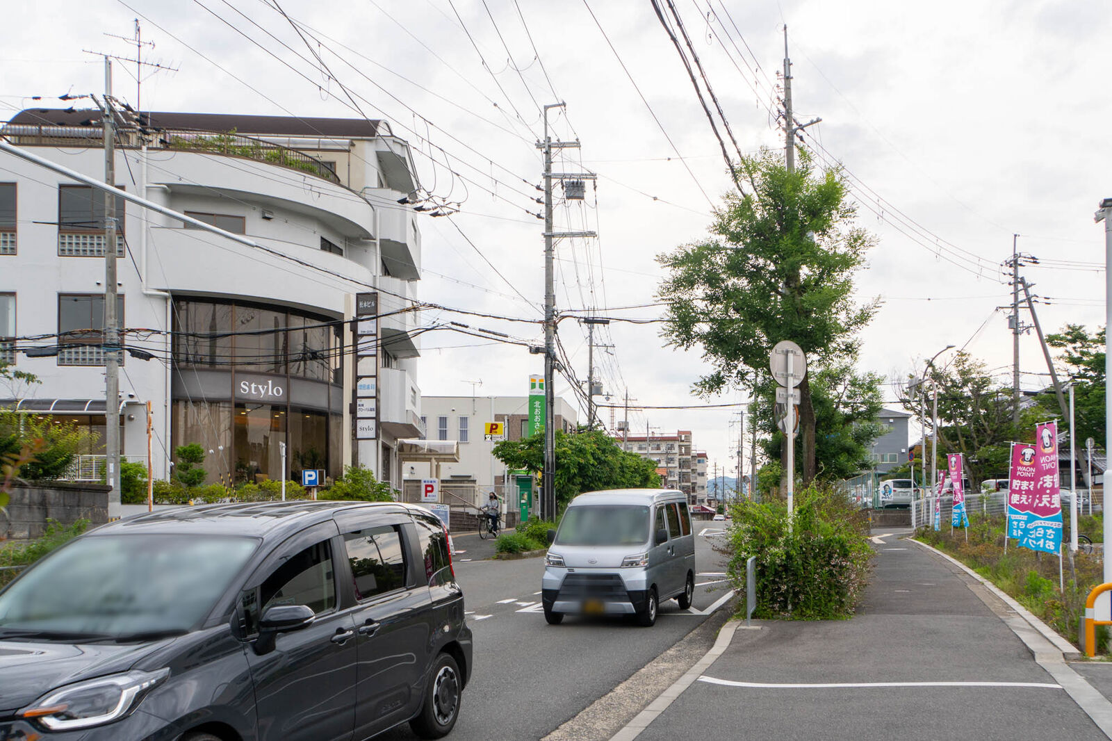 反対方向に行くと、赤十字病院やマルヤスなどがあり、茨木方面。