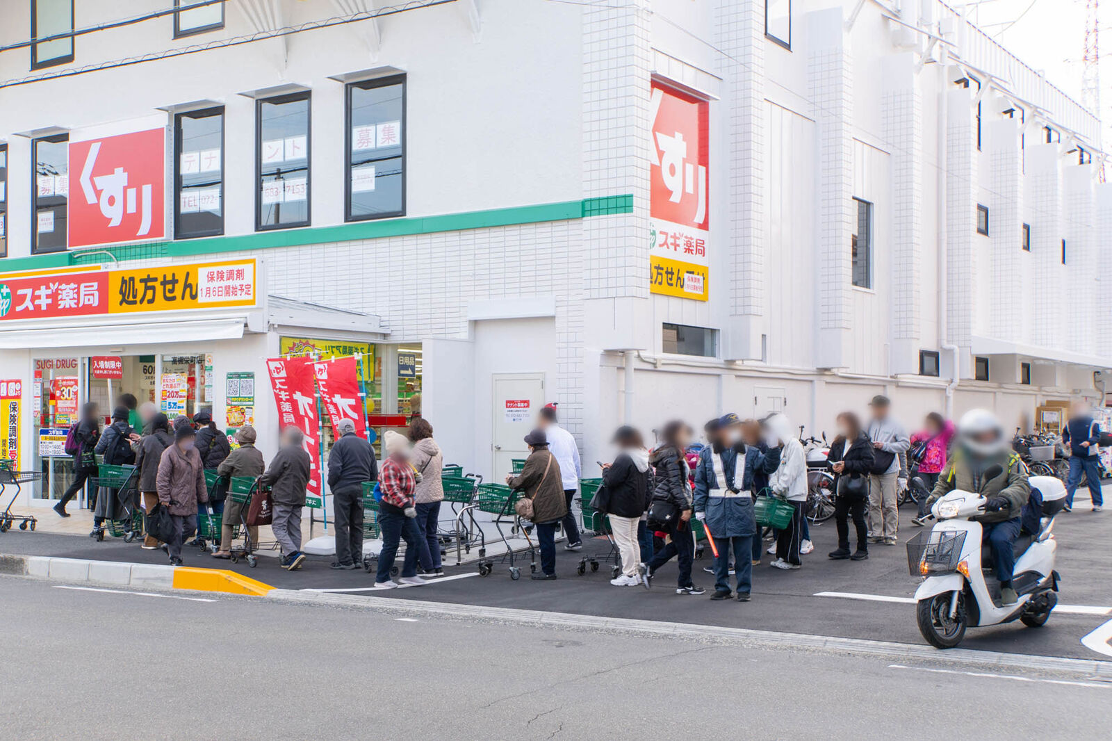 栄町につくってた「スギドラッグ」がオープンしてる。行列できてた