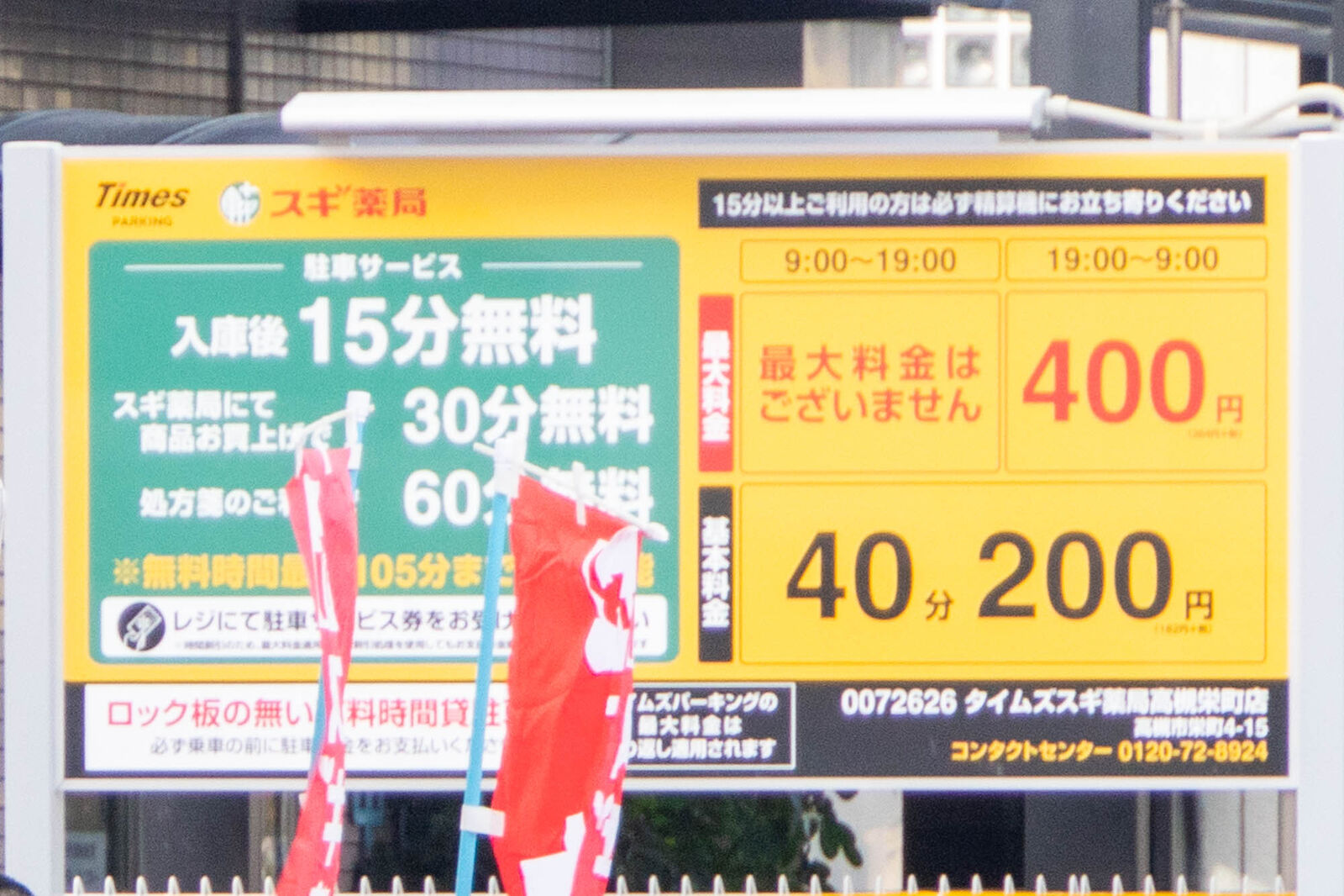 駐車場はタイムズでして、入庫後15分は無料ですが、それ以降は料金がかかる模様。