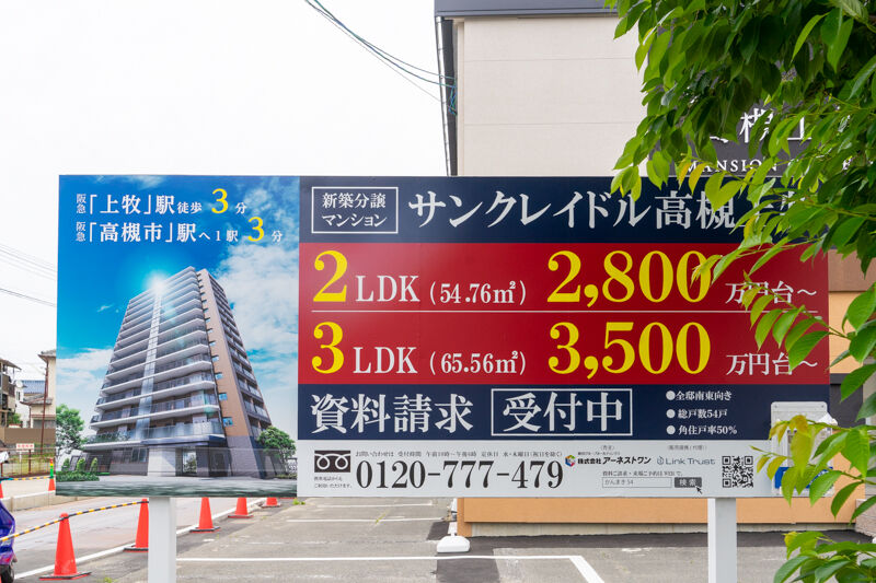 上牧駅ちかくに「サンクレイドル」って14階建てのマンションつくってる