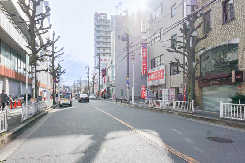 店舗の向かいには高槻阪急がありまして、こっちに行くと、島珈琲や井上写真場などが入っていた解体工事中のビル、突き当りは天神さんで有名な上宮天満宮。