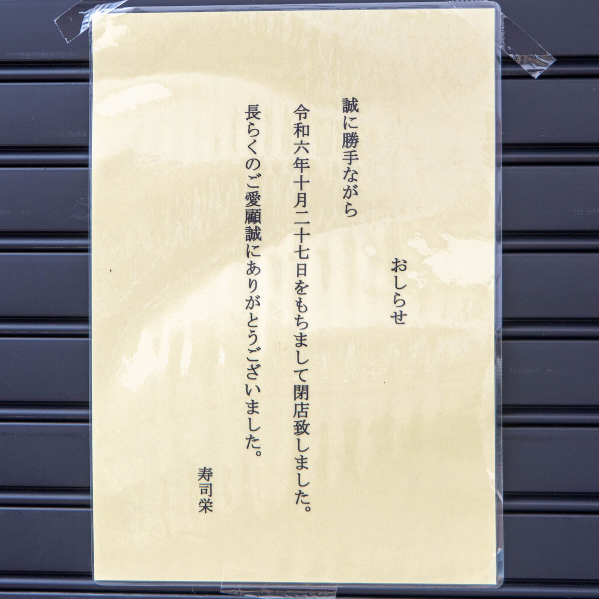 JR高槻駅近くの「寿司榮」が閉店しています。