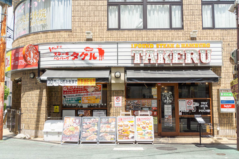 「1ポンドのステーキタケル」閉店後は、大阪市内やららぽーとEXPOCITYのお店でステーキをいただけます。