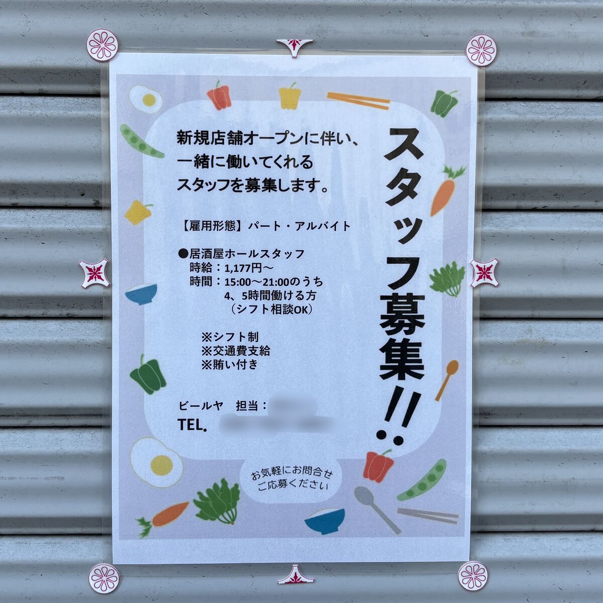 お知らせによると、「ビールヤ」という居酒屋がオープンすることがわかります。