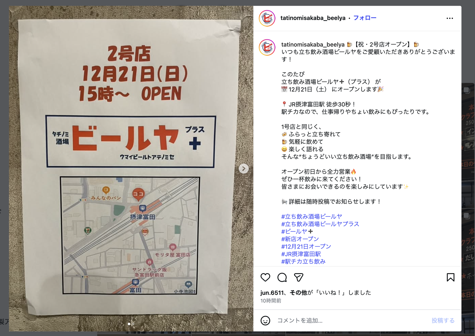 阪急富田駅南側にある「ビールヤ」によると、『ビールヤ+』は2号店とのこと。