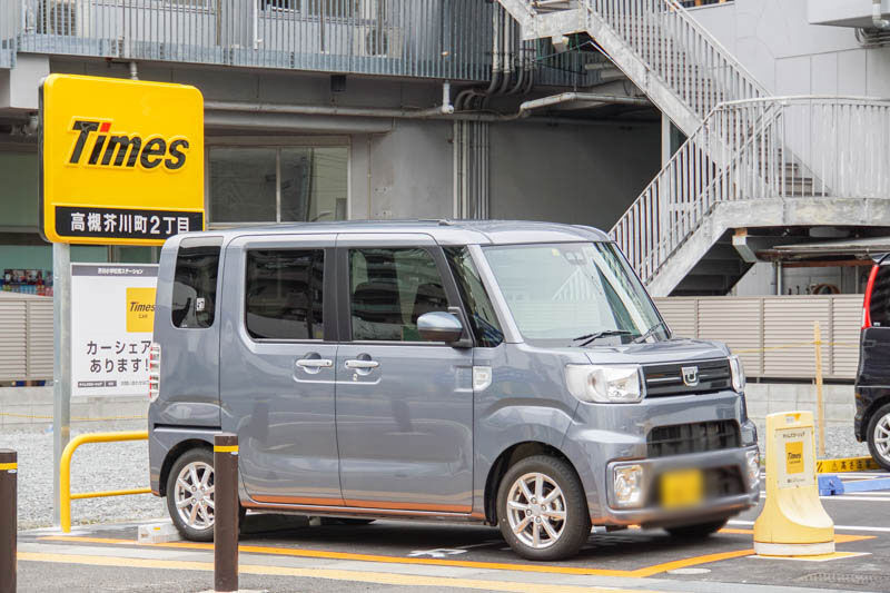 このタイムズには、カーシェア用の車も1台ありました。カーシェアでは「芥川小学校南」の登録になっていて、コインパーキングと名前が違うので注意。