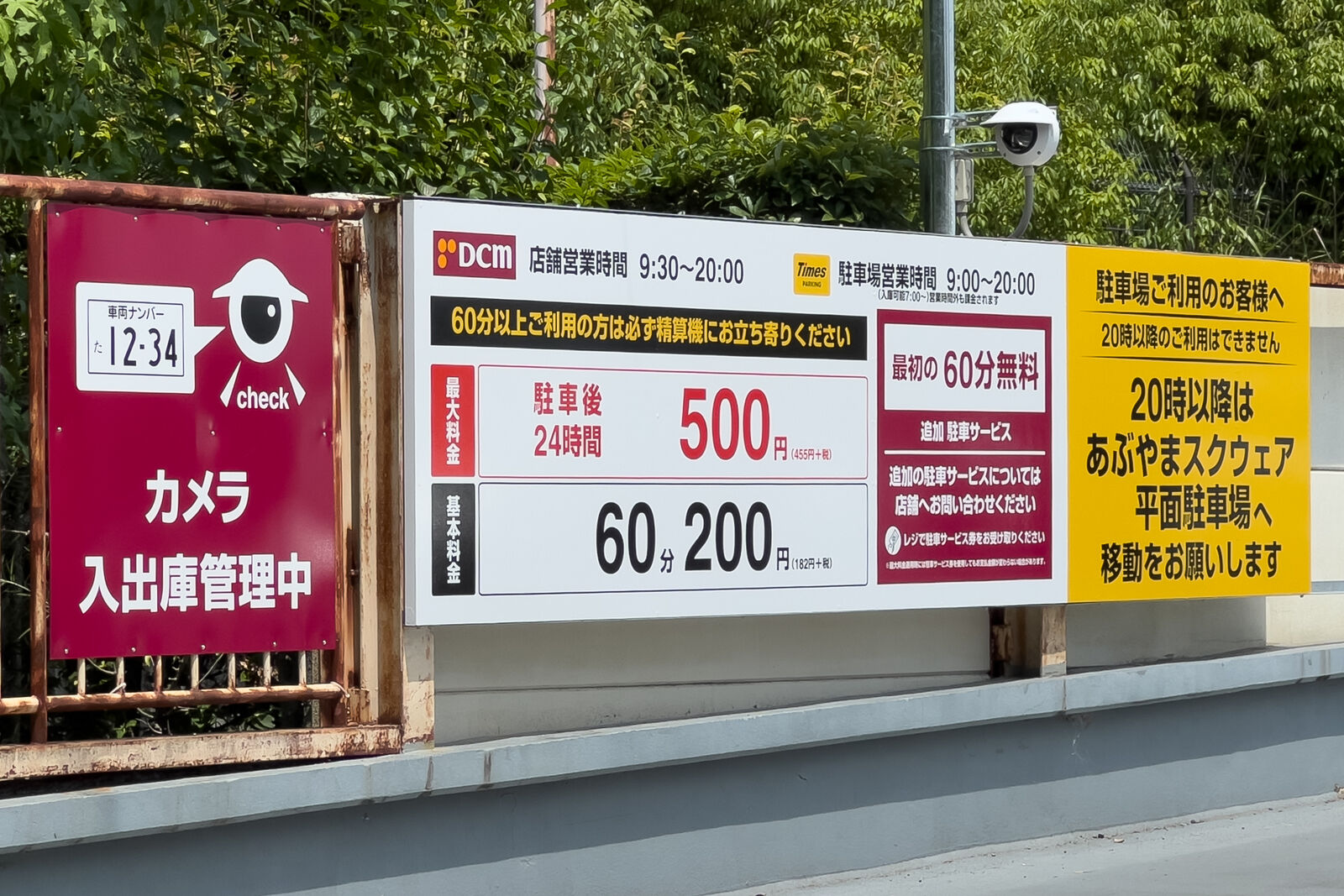 車両ナンバー認識システムで、最初の60分は無料で、駐車後24時間最大料金は500円だそう。