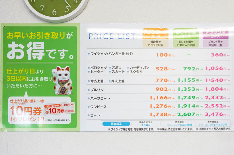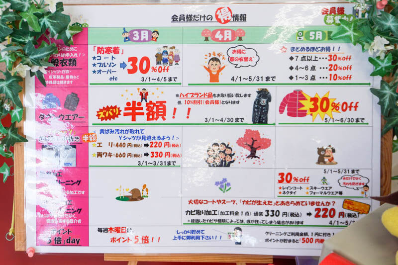 クリーニングの割引も。