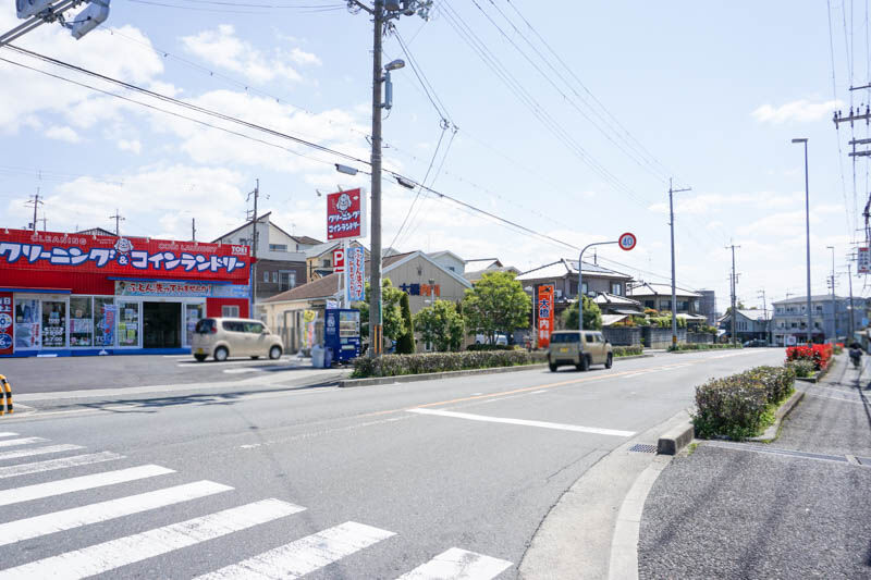 お店の前には府道6号線が走っていまして、こっちに行くとゲオや3月24日にリニューアルオープンしたファミリーマートがあり、みどりヶ丘病院方面。