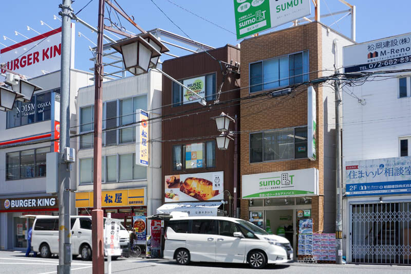 店舗向かいは阪急高槻市駅南口で、お店の並びには松屋やバーガーキングがあるところ。