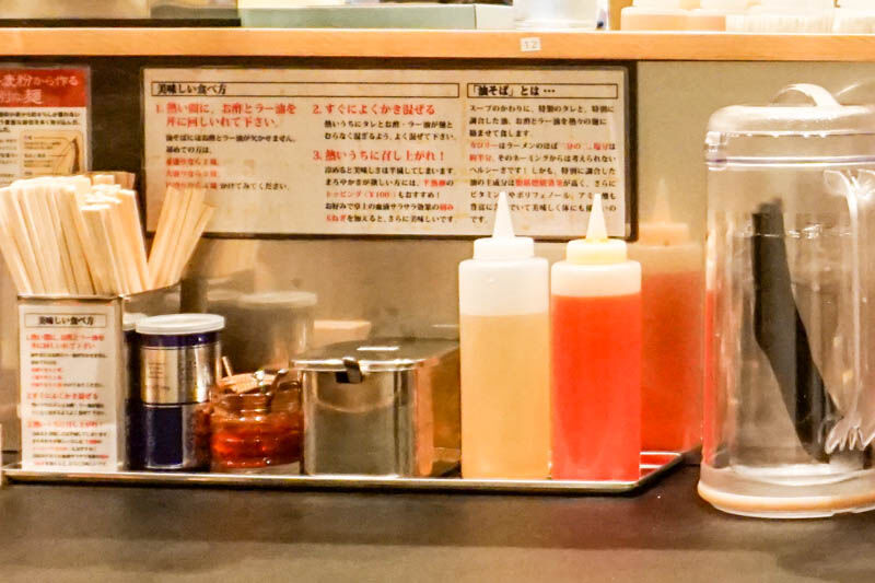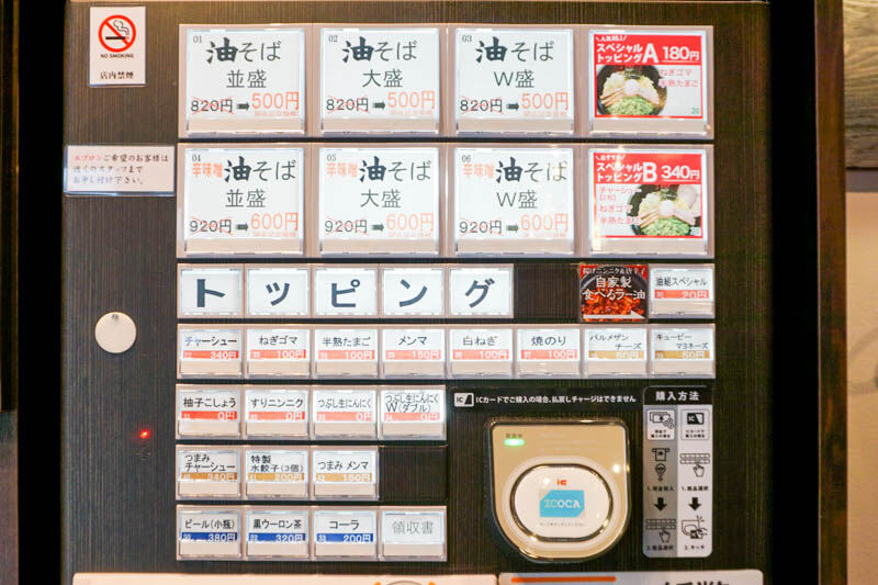 メニューは、「油そば」と「辛味噌油そば」に好みでトッピングを追加していく形式のよう。