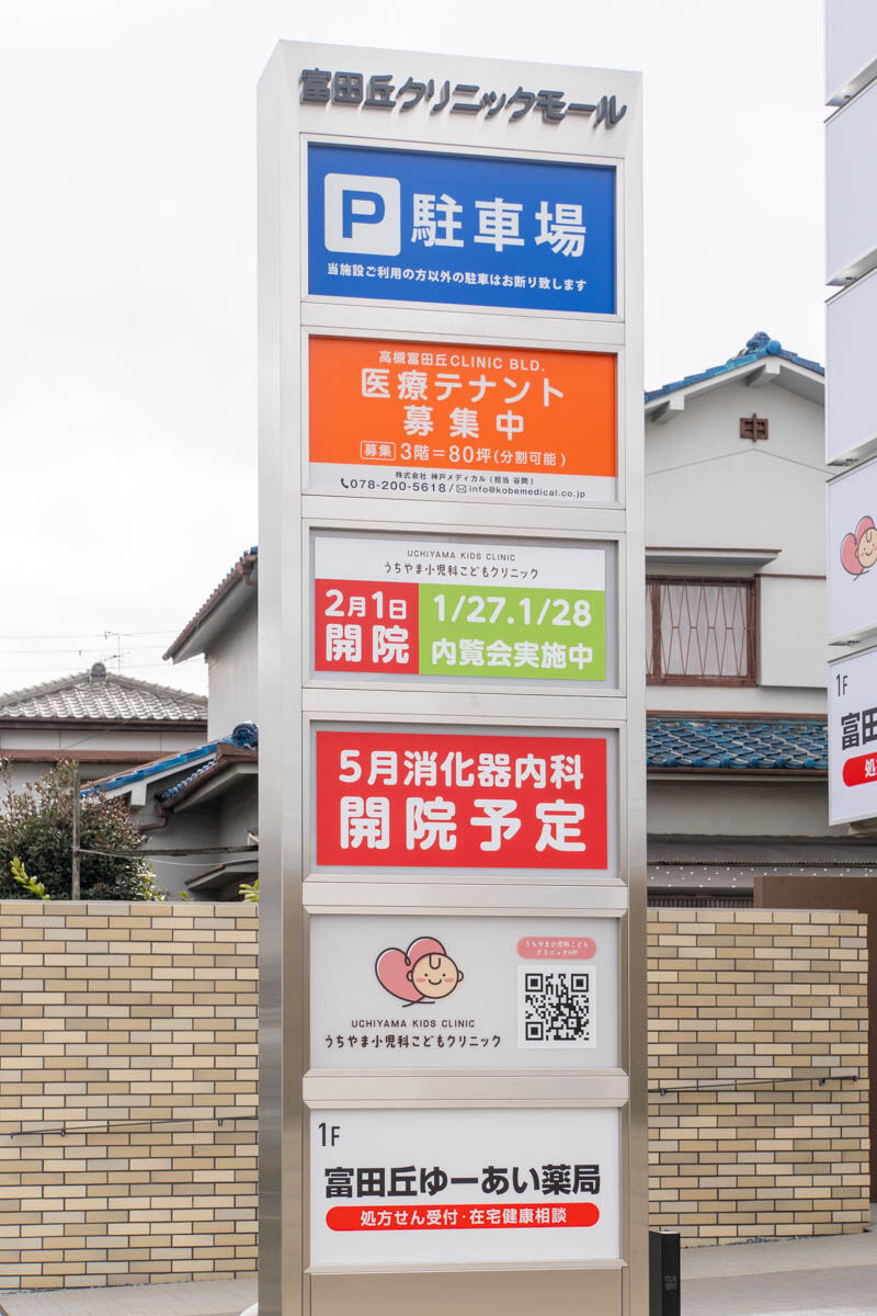 富田丘町につくってた「うちやま小児科こどもクリニック」「富田丘ゆーあい薬局」がオープンしてる