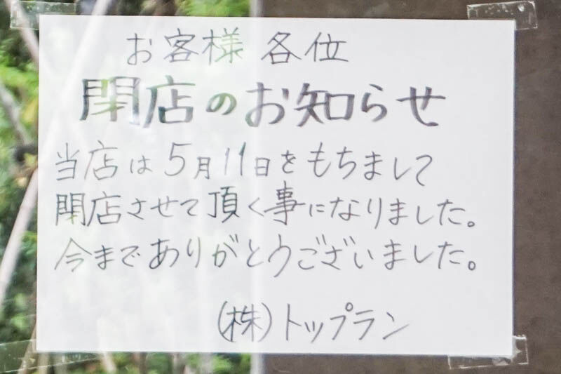 5月11日に閉店との貼紙が。