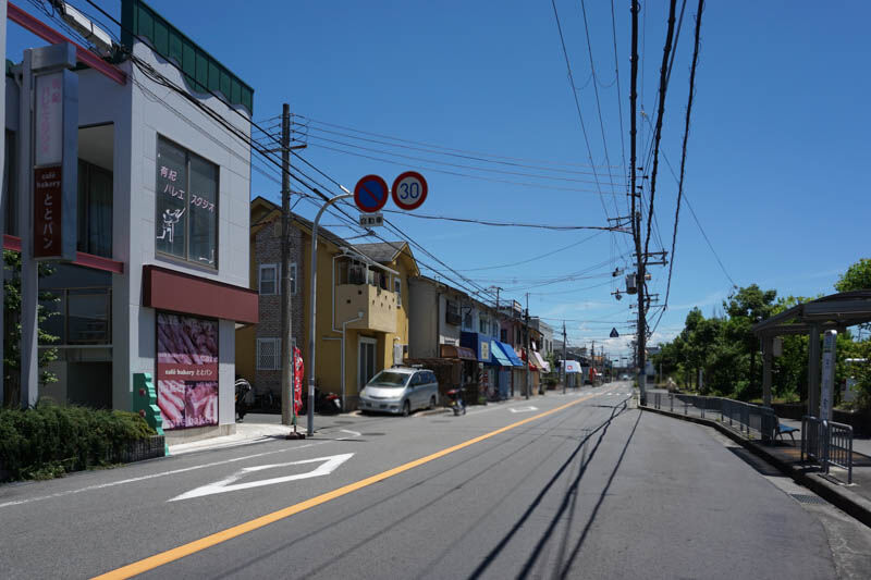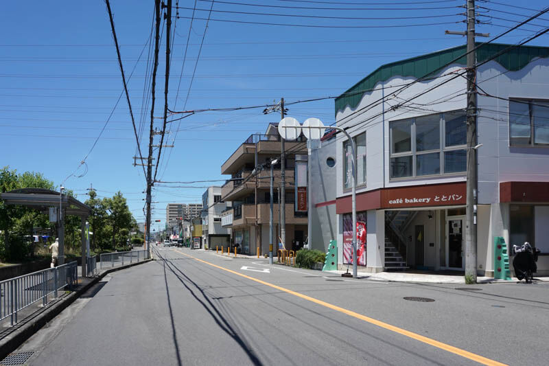反対方向に行くと、ファミリーマートや六中学校があり、新幹線高架の先は桧尾川堤防方面です。