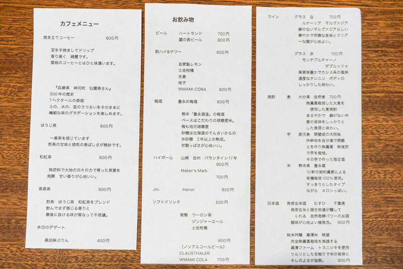 飲み物も、身体のことを考えて無農薬や有機栽培のものを使って作られたものなどを取り揃えているそう。