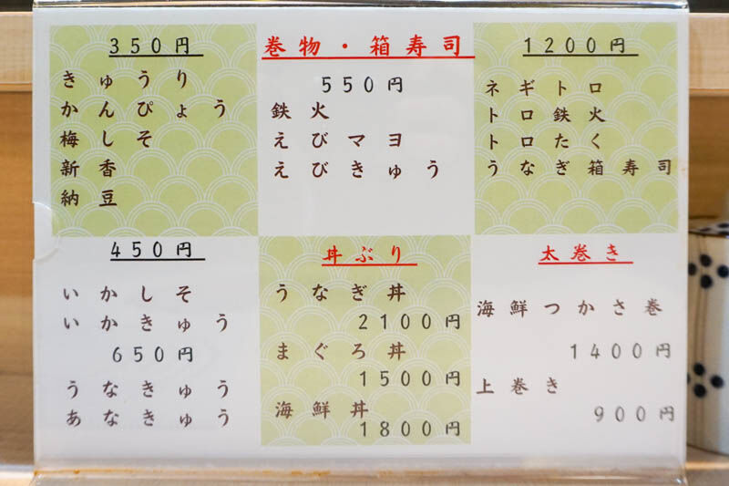 巻物、太巻き、丼ぶりもあるみたい。