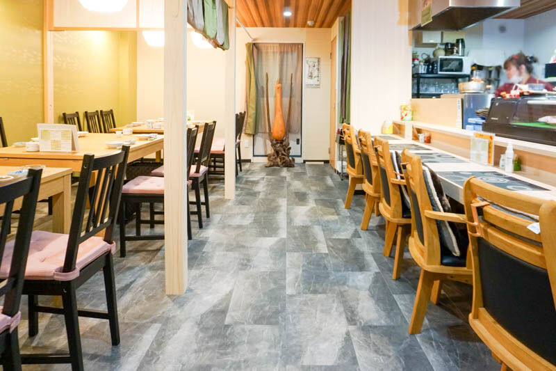 おちついた感じの、和のテイストがしっかりした雰囲気のお店。カウンター席とテーブル席があります。