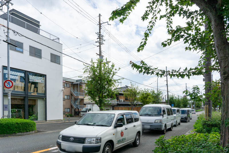 反対方向に行くと、阪急電車の踏切があり、踏切をさらに奥へ道なりに進むと国道171号線へ続きます。