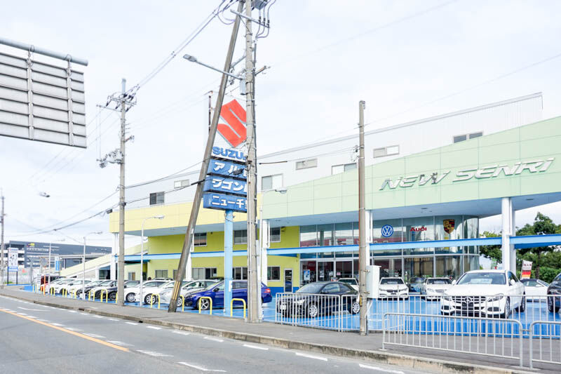 自動車の整備・販売店「ニュー千里」の敷地内。