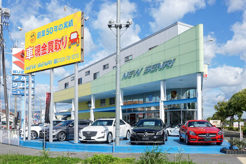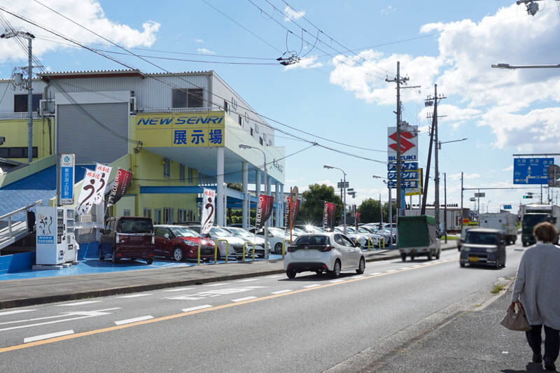 自動車の整備・販売店「ニュー千里」の敷地内。