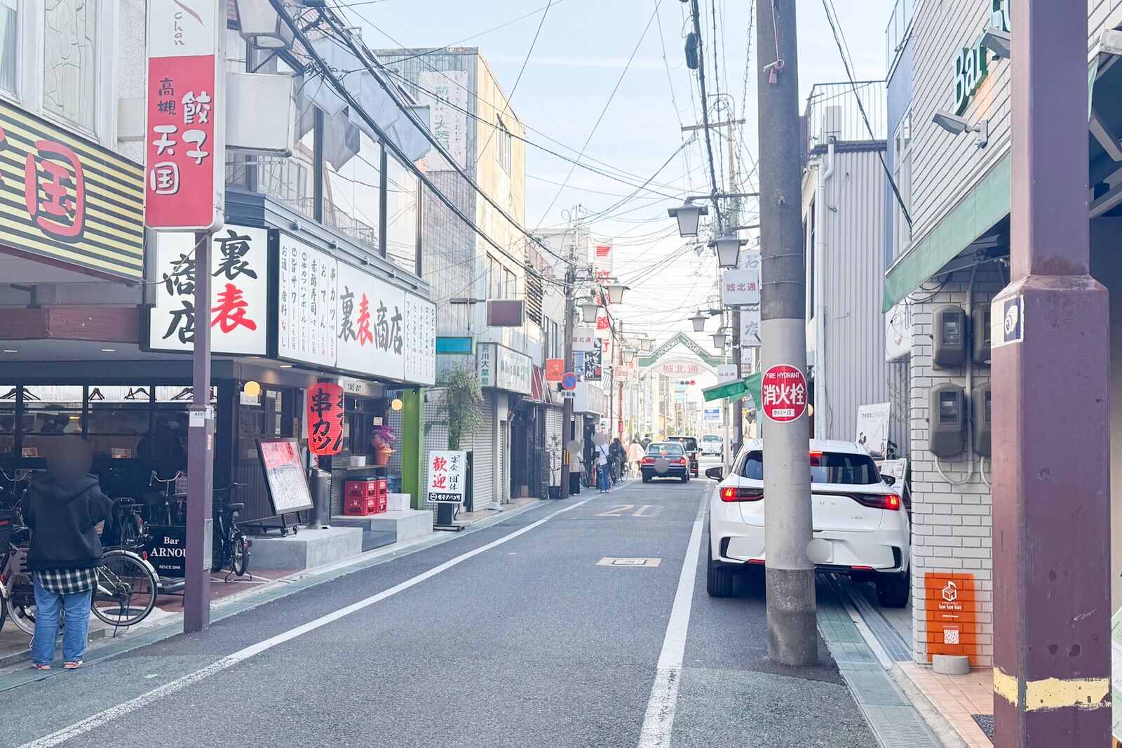 反対方向にいくと、「肉のやまかわ」などがあり、阪急高槻市駅へ。