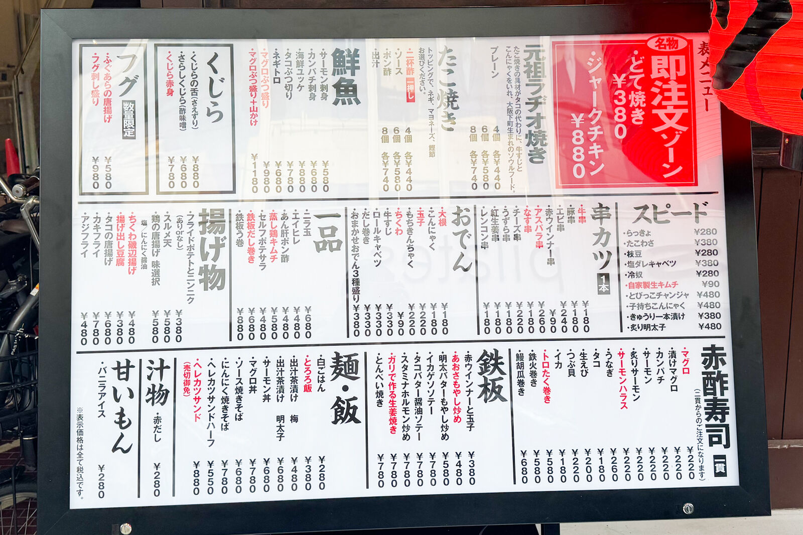 メニューの名前もなかなか面白いです。裏と表でメニューの内容は一緒だけど、メニュー名が違うんだとか。フグやくじらも楽しめるそう。