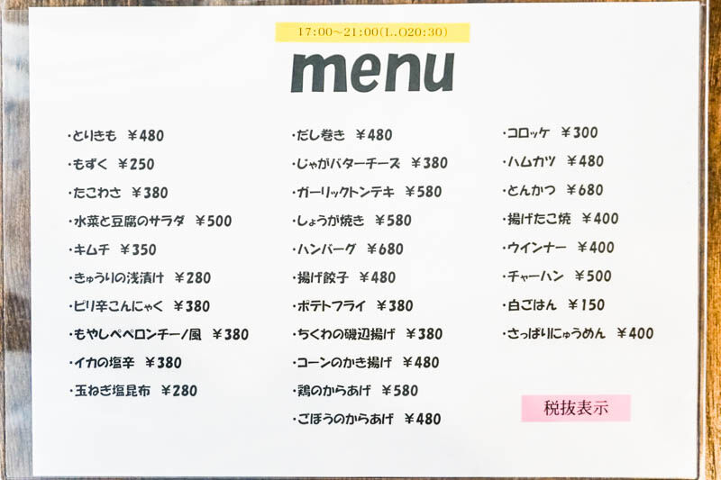 お昼はランチメニューが、夜は一品料理が頼めて居酒屋としても利用できるようです。