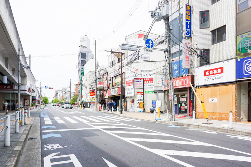 目の前の道路は阪急みずき通りに面していまして、こっちに行くと去年オープンした無人生餃子販売所「ふくちぁん餃子」や高槻センター街、先月オープンした東京油組総本店などがある方。