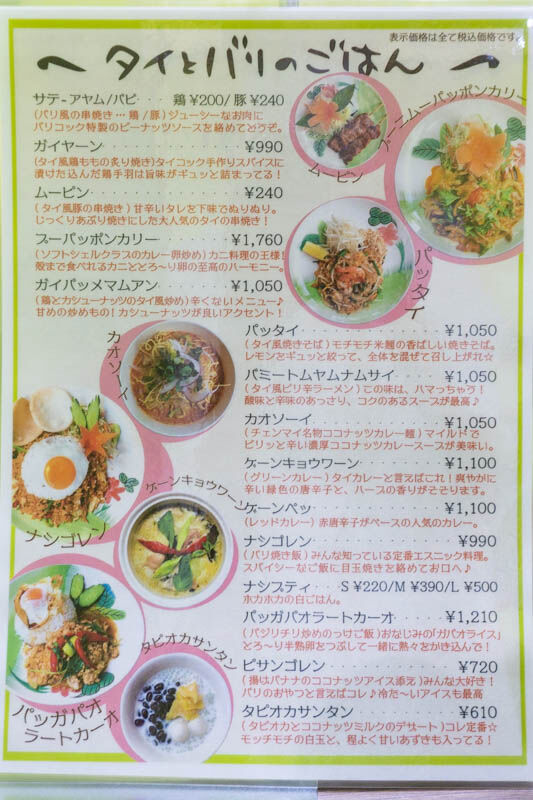 その他メニュー→タイとバリのごはんメニュー1、タイとバリのごはんメニュー2、ドリンクメニュー