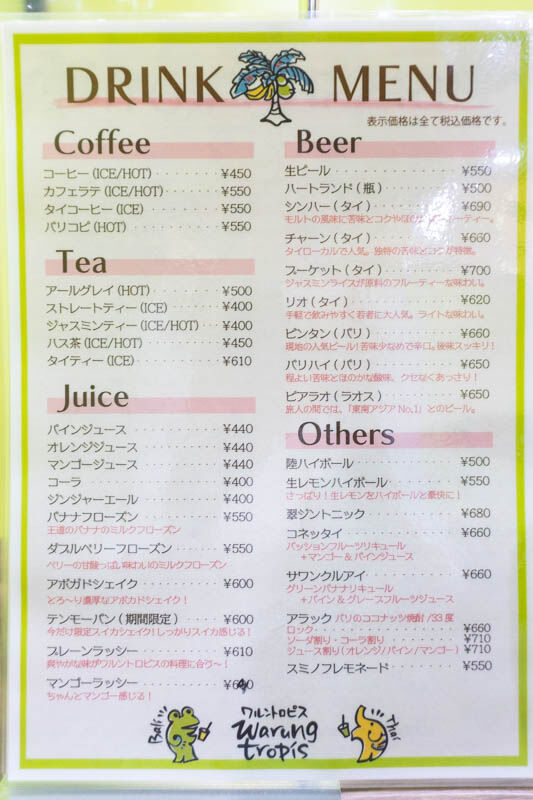 グリーンプラザ3号館に「ワルントロピス」ってタイとバリとごはんのカフェができてる。熱帯食堂のグループ