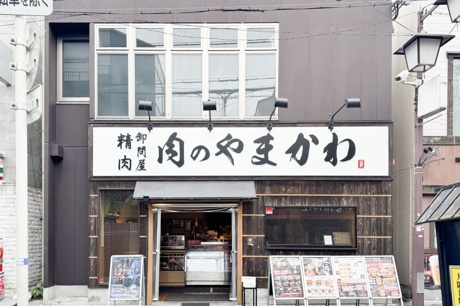 以前ここに「焼肉やまかわ」がありましたが、現在は「精肉卸問屋 肉のやまかわ」として移転リニューアルしています。