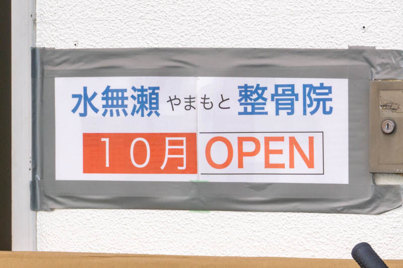 水無瀬商店街に「水無瀬やまもと整骨院」ができるみたい。10月オープン