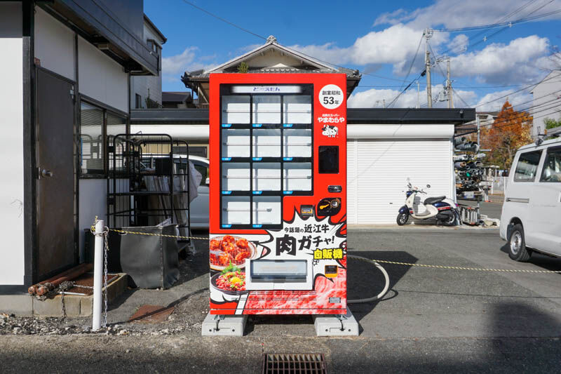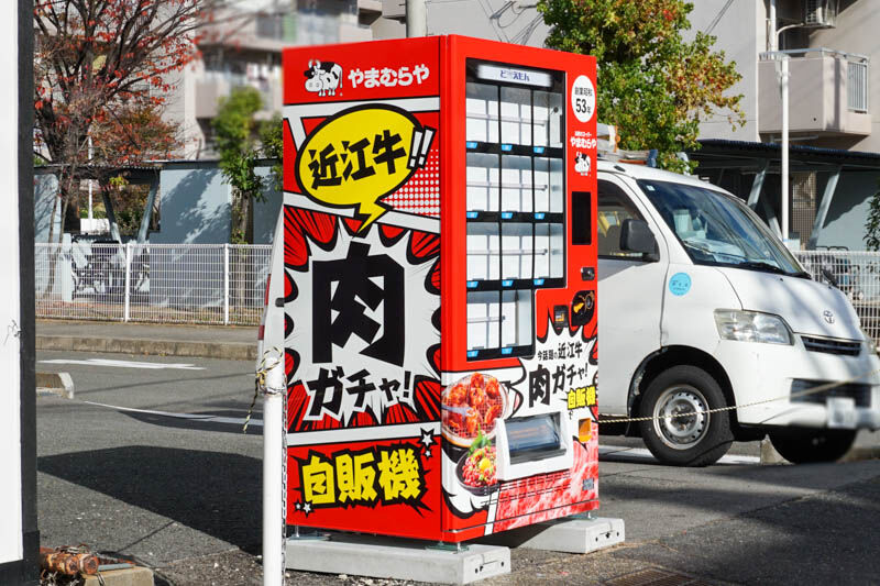 これは、京都と滋賀にある焼肉やバーベキュー用のお肉を販売する「お肉のスーパーやまむらや」が展開している自販機です。