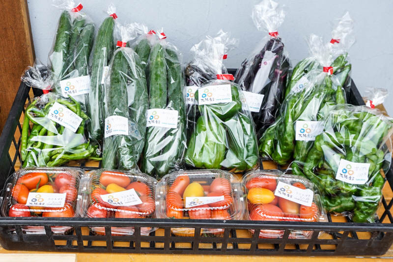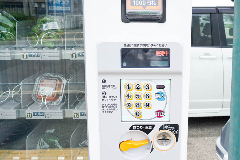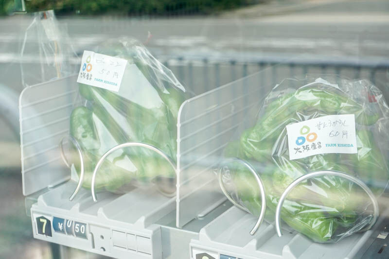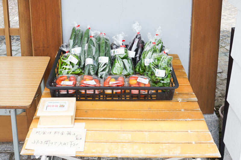 自販機には、きゅうりとトマト、甘唐辛子が確認できました。