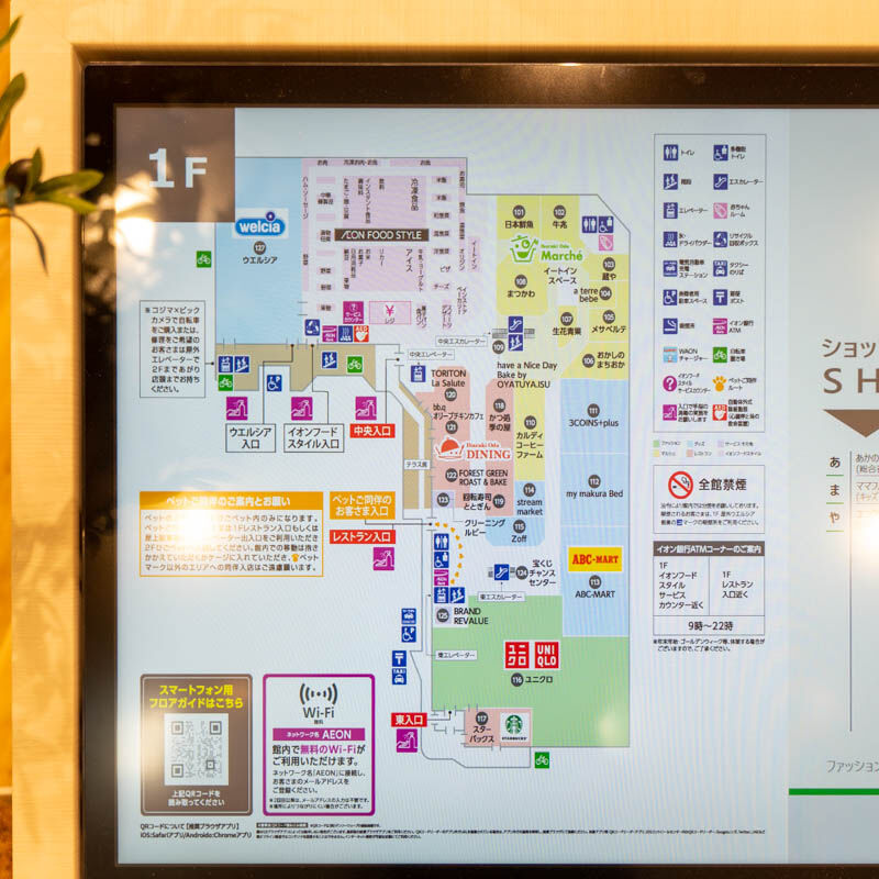 中央入口の目の前、イオンフードスタイルの向かいあたりにあります。