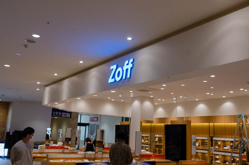 Zoffは低価格でメガネを販売するチェーンで、日本で一番はやくにこの低価格路線を打ち出したお店。近隣だとEXPOCITYにも店舗があります。