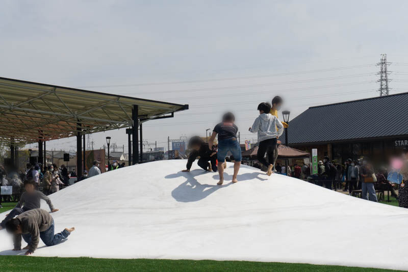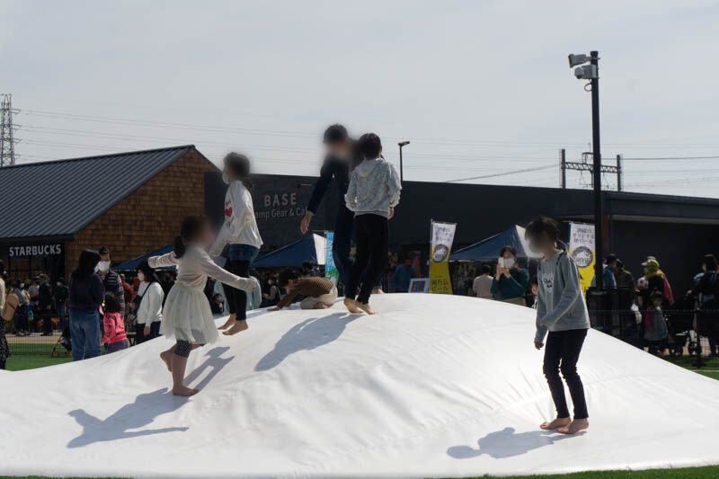 ふわふわドームでは子供たちが楽しそうに飛び跳ねていて、