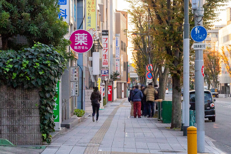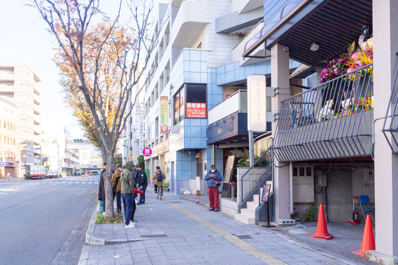これは僕が開店40分前の7時20分ごろに到着した時の写真。すでに10数名並んでいました。
