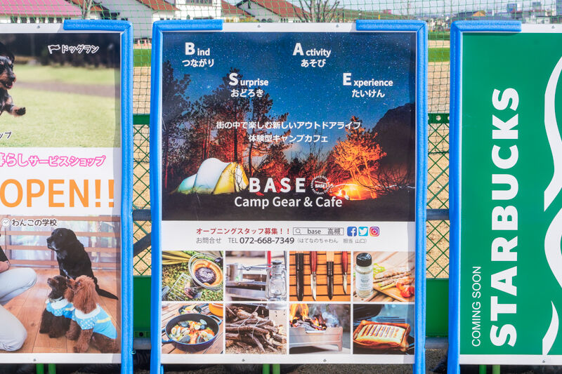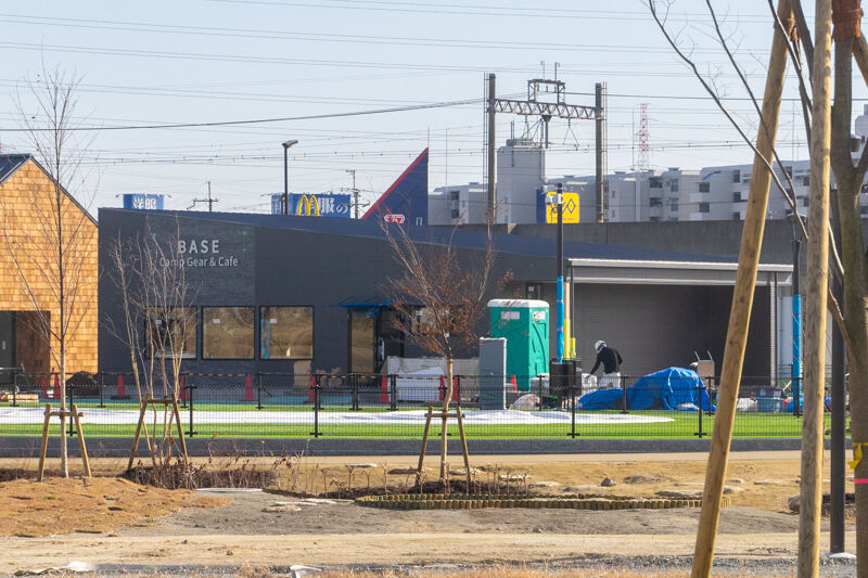 安満遺跡公園につくってる「キャンプギア&カフェ BASE」のオープン日は3月27日