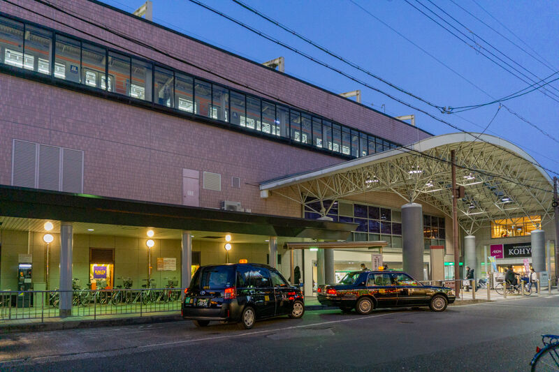 お店に背を向けて撮るとこんな感じで、阪急高槻市駅です。ロータリー沿い。