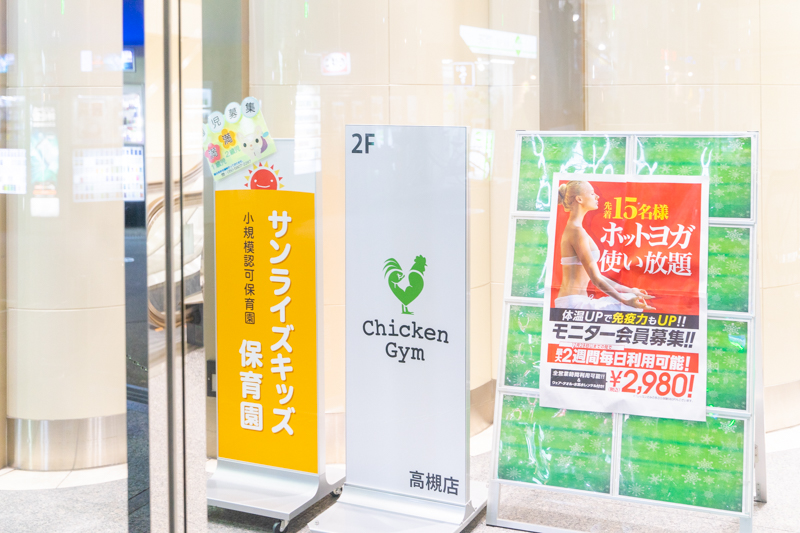 チキンジムは関東を中心に出店しているジムで、大阪府内では心斎橋につづいて高槻店が2店舗目となります。RIZAPの跡地に出店することが多いそう。