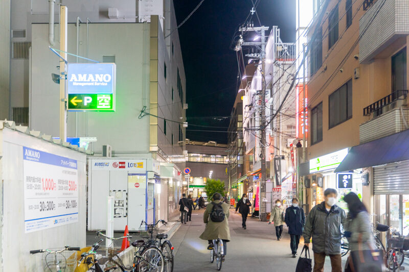 ビルに背を向けて撮影した写真。奥に見えているのが阪急高槻市駅の北口という位置関係。