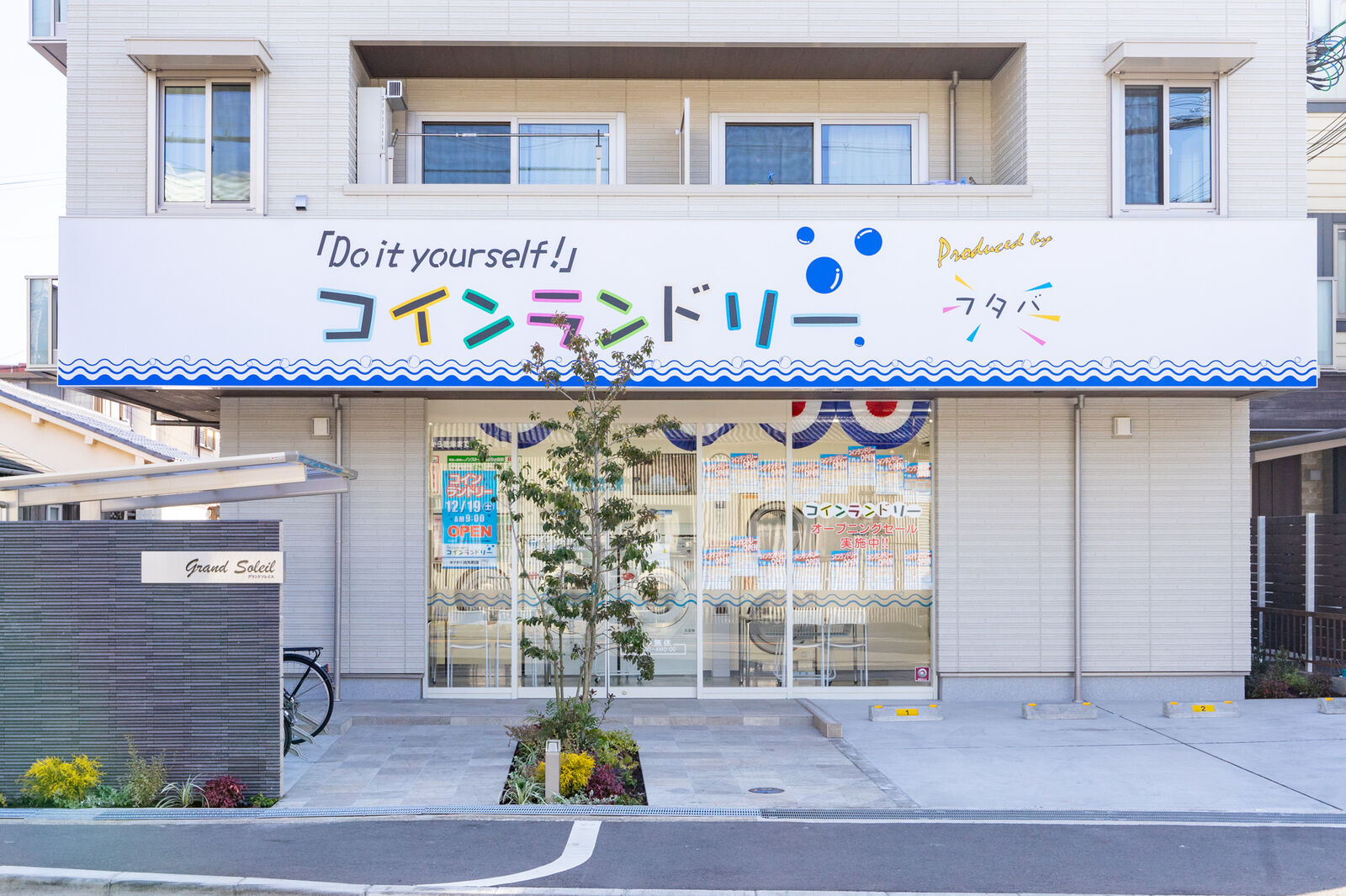 オープニングセール実施中の文字。貼紙を見ると12月19日にオープンしたことがわかります。