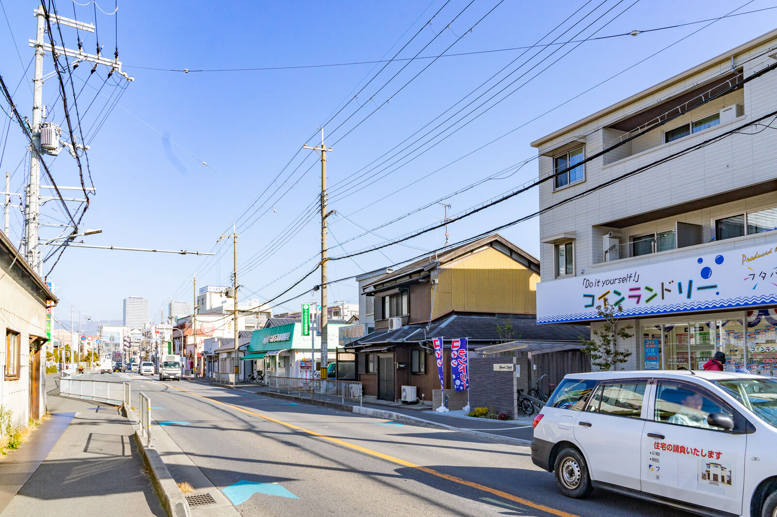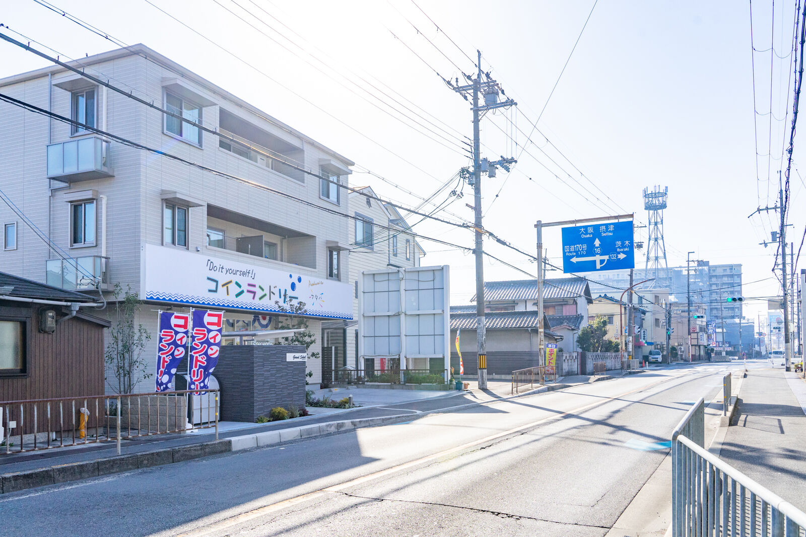 写っていませんが、向かいにはライフやコーナン、ケーズデンキなどがあり、進んでいくと高槻市役所のそばから国道171号線に出ます。